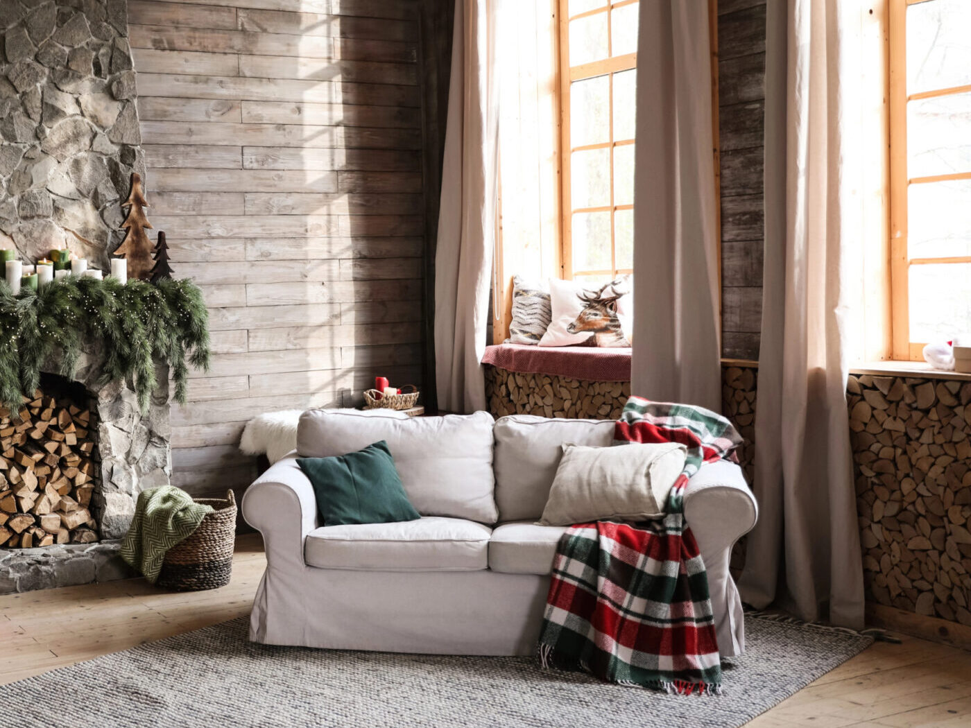 For winter weather, heavier textiles do wonders. Not only will it keep you warm when you cuddle up on your couch, but it conveys a warm feeling to the rest of the space. Try tartan plaids or faux fur blankets to continue the woodsy theme, or branch out with woven wool or canvas blankets.